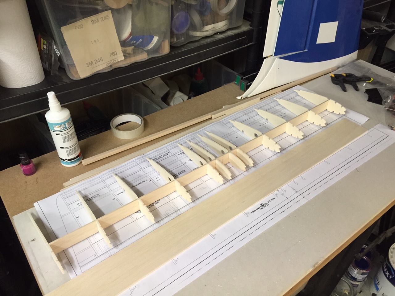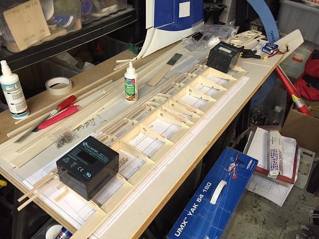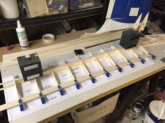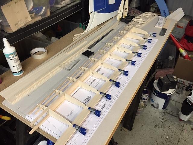 More glueing. Stringers and top / bottom spar caps going on...
